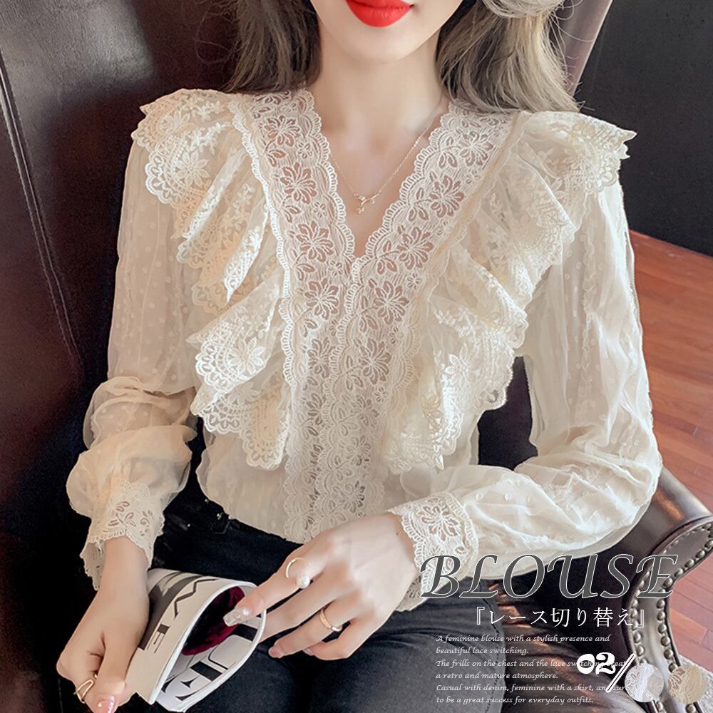 レース切り替えシャツ ブラウスフリル ワンサイズのみ