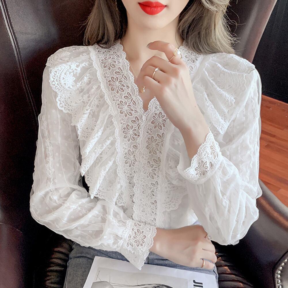 シフォンブラウス レディース vネック 刺しゅうシャツ 大人かわいい 韓国ファッション トップス 春秋新作 透け感