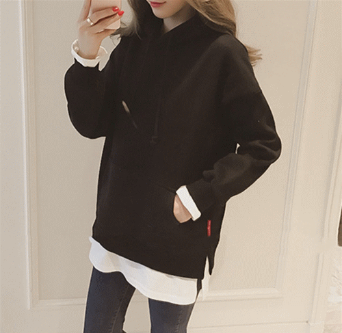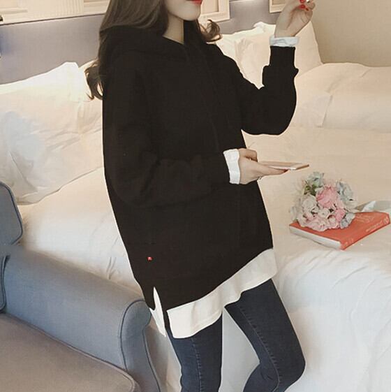 パーカー 重ね着風プルオーバー 長袖 レディーストップス ゆったり 人気新作