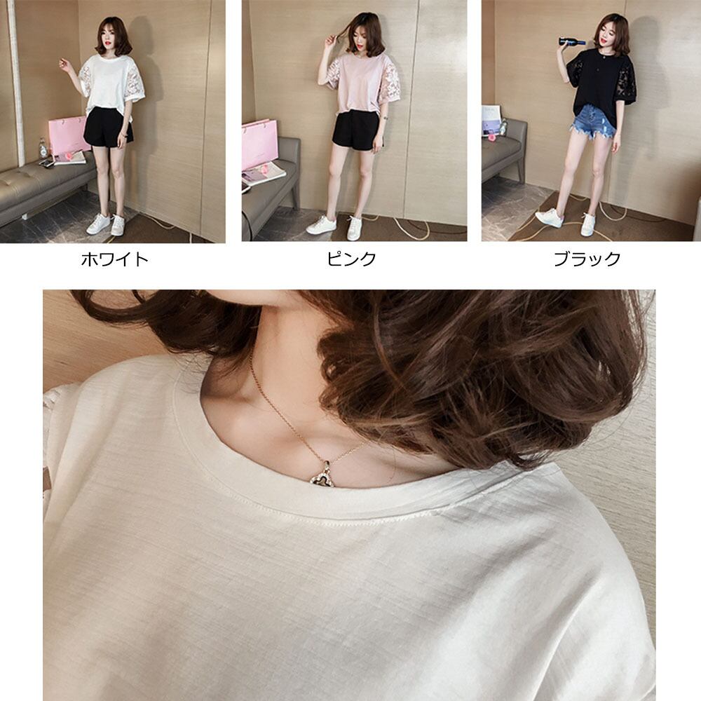 ブラウス レディース 着やせ 刺しゅうレース トップス 切り替え ボリューム袖 ワンサイズのみ