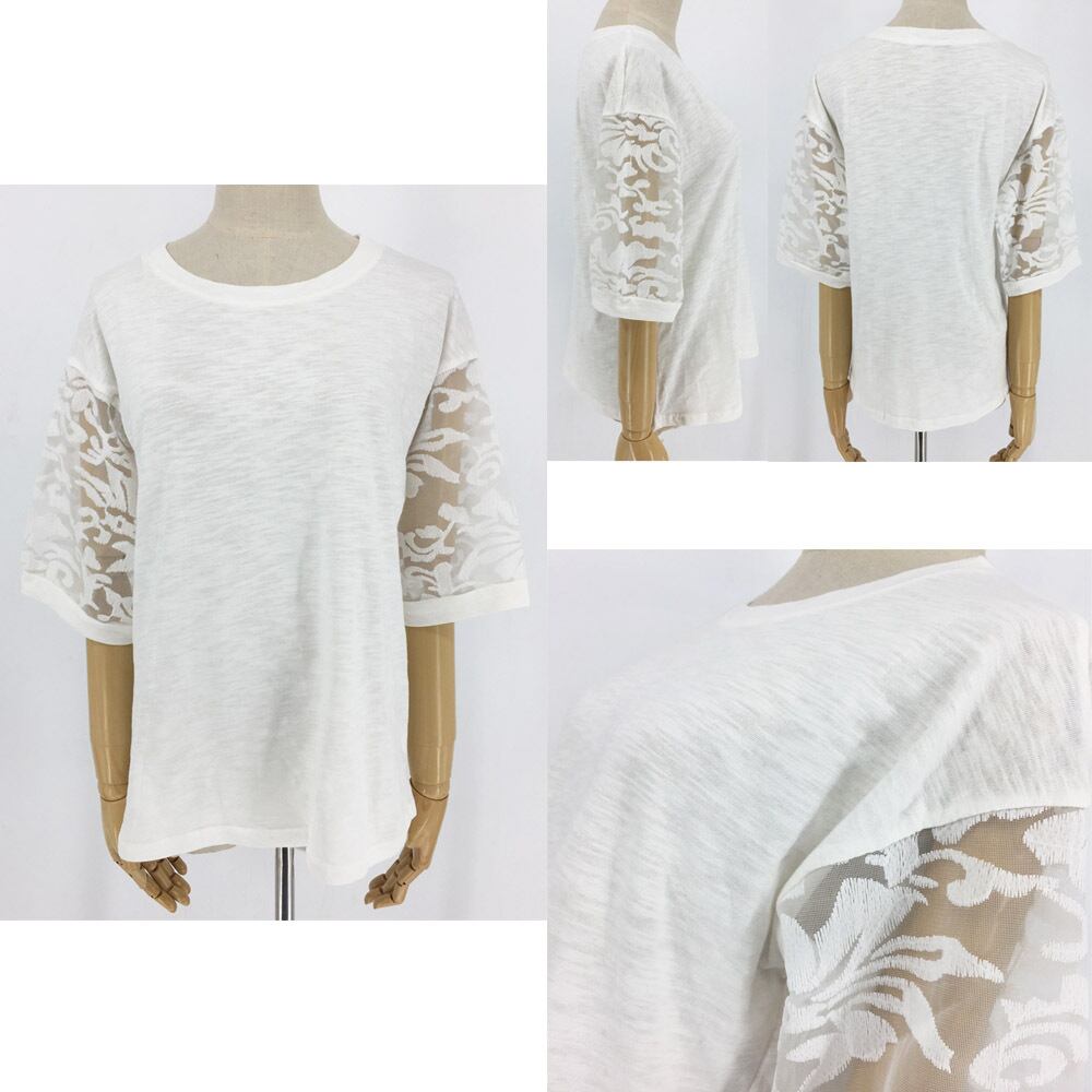 刺しゅうレース切り替えデザインで華やかな雰囲気を与えてくれる刺しゅうチュールカットソー