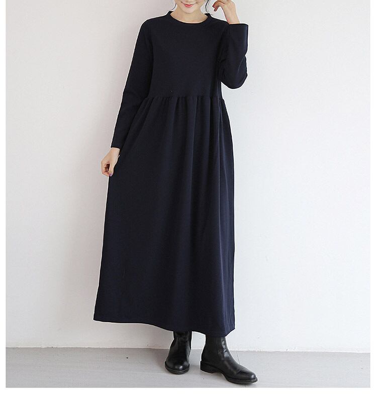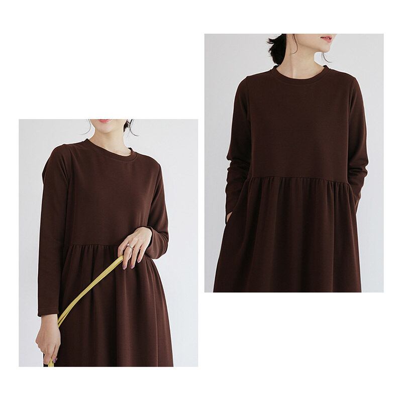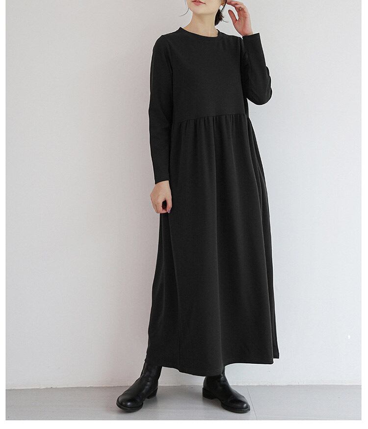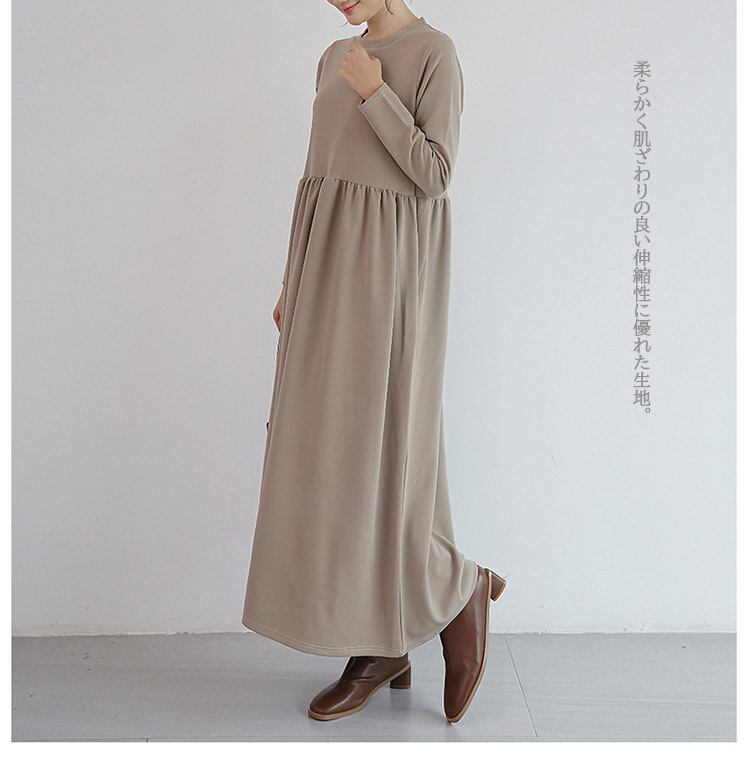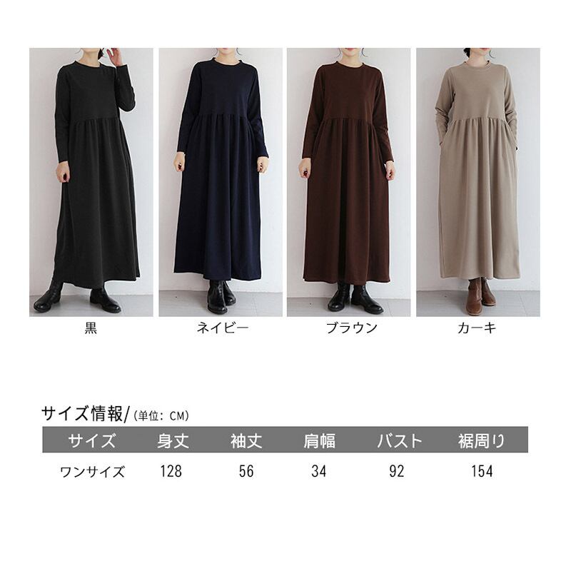 レディース ロングニット ワンピース 長袖 伸縮性 無地 着回し きれいめ カジュアル Aライン ワンサイズのみ