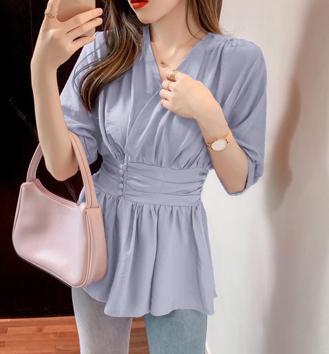 ブラウス フレアシャツ シフォンブラウス Vネック Aライン レディーストップス カジュアル