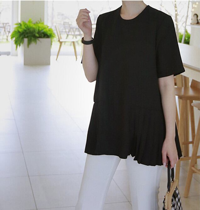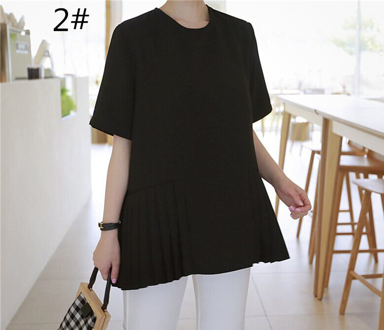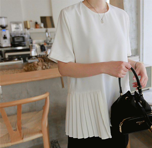 ブラウス プリーツ ブラウス ラウンド 半袖 レディーストップス オシャレ