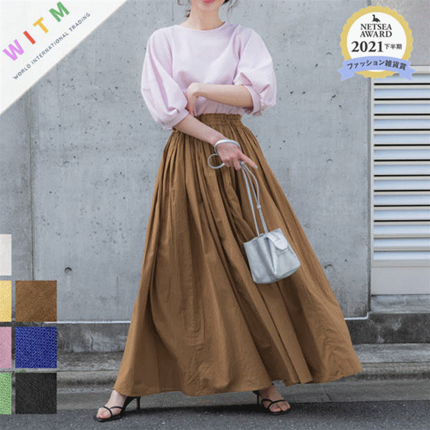 春夏新作 ロング丈スカート スカートAライン ウエストゴム レディース オシャレ フリーサイズのみ