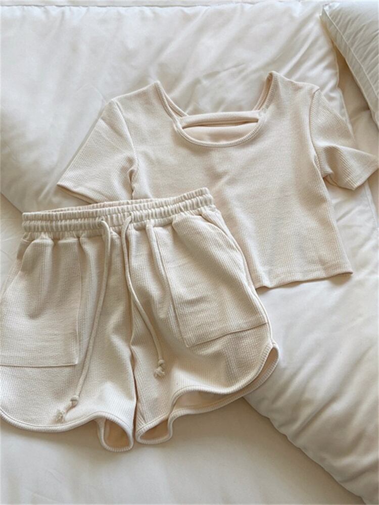 キレイめもカジュアルもOK 2点セット 減齢 ショートパンツ 運動 スポーツウェア ピュアカラー