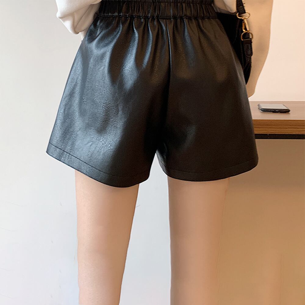 レザー ショートパンツ レディース ウエストゴム フェイクレザー