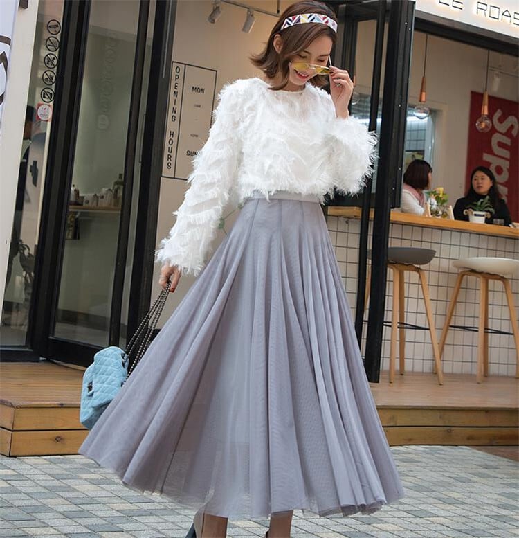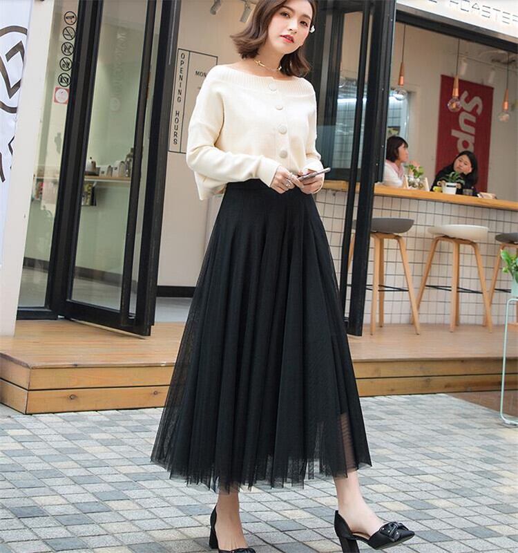 激安セール メッシュスカート サマースカート 中・長セクション エラスティック ハイウエスト スカート フリーサイズのみ