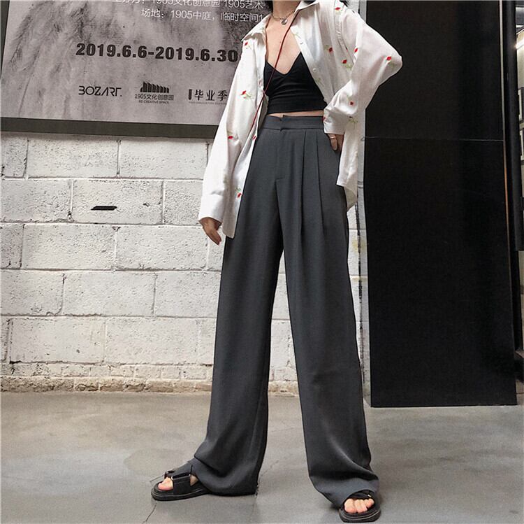 ストレートレッグ スーツパンツ ロングパンツ ハイウエスト ワイドパンツ
